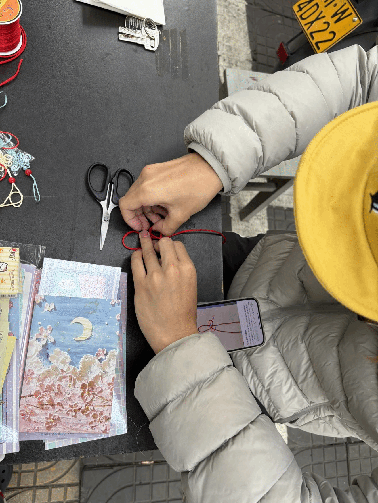 本次活动以 “以匠心守初心,以创作传精神,以赤心践使命” 为核心导向,深度融合传统工艺传承与价值引领,让参与者在动手实践中感受传统文化的独特魅力。活动现场,书画协会的干事们化身 “文化传承人”,耐心细致地指导每一位参与者:从中国结编绳的穿、绕、打、结,讲解 “平结”“吉祥结” 的传统技法与美好寓意;到手绘书签的创意构思、色彩搭配,鼓励大家将个人心声与文化元素相结合。同学们全神贯注沉浸在创作乐趣中,指尖翻飞间,红色绳结交织成象征吉祥如意、平安顺遂的中国结;笔墨挥洒处,山水、花鸟、诗词等元素跃然纸上,让小小的书签兼具实用性与艺术美感,成为承载文化情怀的独特载体。