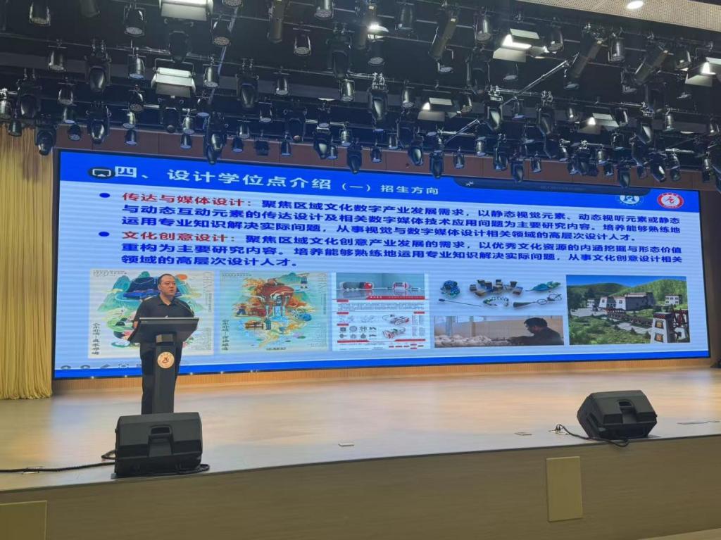陈老师围绕攀枝花市地理位置、攀枝花学院概况以及艺术学院办学情况等多个维度展开详细介绍。其中,宣讲重点聚焦于攀枝花学院设计专业硕士点的鲜明特色,以及研究生奖助的相关政策。