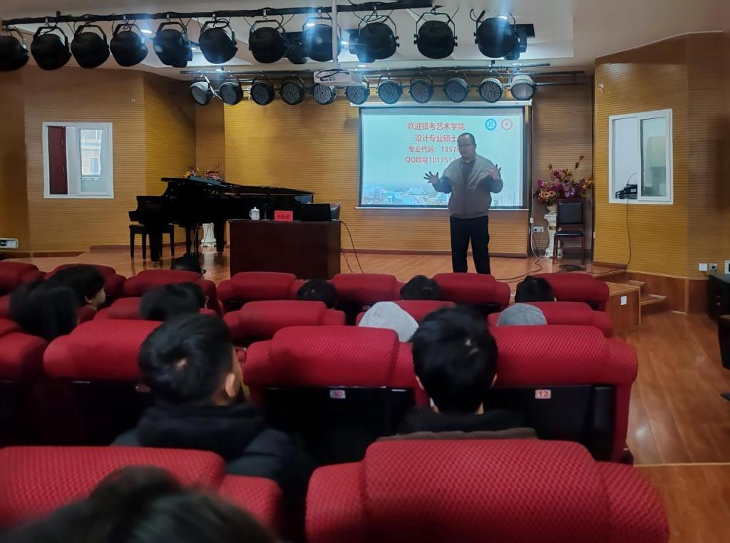 10月23日上午,攀枝花学院艺术学院院长孙载斌赴四川民族学院,在A区美术学院艺术楼B505举办设计专业硕士招生宣讲会。会议由四川民族学院美术学院院长刘康杨主持,副院长袁光富、教务科科长周旭、办公室主任唐唯及2022、2023级部分考研同学到场参会。