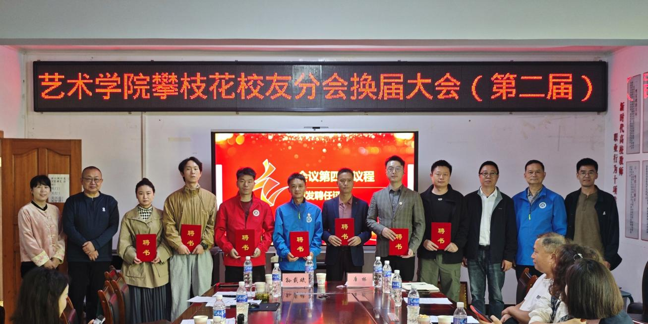 艺术学院校友联络员刘兆义宣读了《关于同意艺术学院攀枝花校友分会换届的批复》:左俊康当选会长,赵智健、官廷生、杨光、罗成鑫、彭权、罗怡萍当选副会长,王陈当选为秘书长。孙载斌、孙念祥为新一届理事会成员颁发聘书。