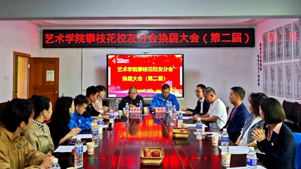11月10日,艺术学院攀枝花校友分会换届大会在攀枝花学院游艺楼成功召开。攀枝花学院招生就业处处长唐林,艺术学院院长孙载斌、党委副书记孙念祥(主持工作)、党委副书记庞闪闪及教师代表、校友代表共聚一堂,共叙情谊、共谋发展。会议由庞闪闪主持。
