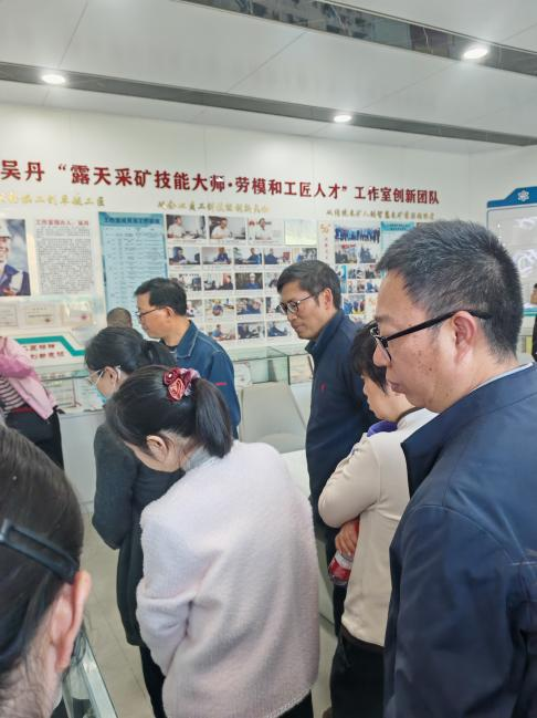 在吴丹露天采矿技能大师(劳模和工匠人才创新)工作室,全国劳动模范吴丹师傅分享了扎根矿山三十余载的匠心故事。从攻克技术难关到推动矿山智能化,吴丹师傅用亲身经历诠释了“干一行、爱一行、钻一行”的执着追求。党员们围绕技术创新、工匠精神、个人成长等话题与吴丹师傅展开热烈交流,被其精神深深打动。