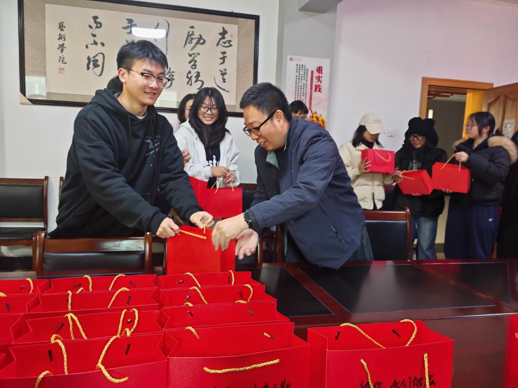 座谈会的最后,学院为同学们精心准备了实用又暖心的考研慰问品。老师们亲手将慰问品送到每位同学手中,沉甸甸的礼包,暖意融融的关怀,让在场学子备受感动,纷纷表示将以更加饱满的热情和坚定的决心投入到最后的复习中,不负韶华,不负期望。